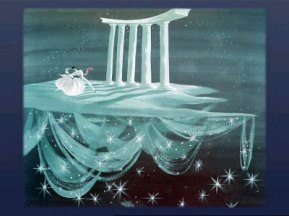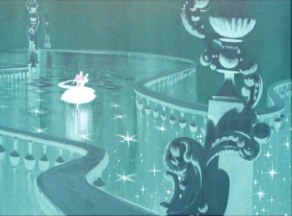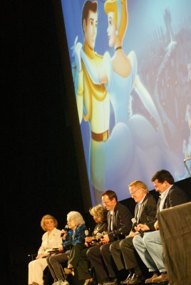 The session began with the trailer for the DVD, which anyone who has bought or rented a Disney DVD this year has likely seen. Siditsky then told the story of how Walt Disney once responded to a question about what was his favorite sequence from any of his animated films. With surprisingly little hesitation, Walt replied that it was the transformation sequence in Cinderella. In light of this anecdote, Siditsky explained, it seemed like an appropriate theme to use for the Cinderella two-disc DVD release. It was not clear exactly how this motif would be implemented for the DVD but highlighting this aspect of the film would appear fitting.