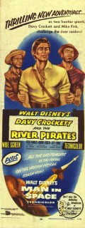 But Disney could not ignore his audience, and so production began on two more episodes focusing on Crockett's earlier adventures. In the meantime, the first three hour-long television episodes were edited into Davy Crockett, King of the Wild Frontier, a 93-minute feature film that graced theaters in May of 1955. The two new final episodes aired in the last two months of 1955, and then were edited into Davy Crockett and the River Pirates, an 81-minute big-screen adventure released the following summer.