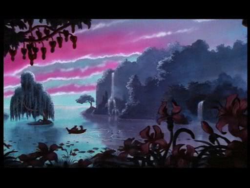 I also find the scenery not as romantic as TLM. Aladdin's scene is dark in color, the sky is extremely dark. Many of the places aren't that "love-mood" - starting. A pyramid isn't a romantic sight Agrabah isn't much of a romantic sight either. Clouds and funny birds aren't that romantic. The only part I could find somewhat romantic is the "Greek" part.