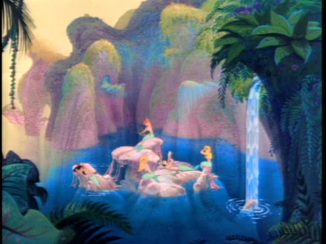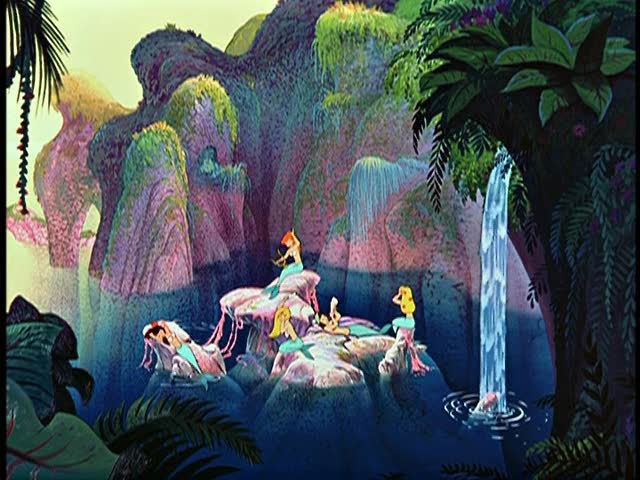 Excellent screencaps, drsd2kill! I love the color palette of the 1990 release (which is what I grew up on). Normally the early 90s VHS tapes look dark and muted compared to later restorations (such as with Cinderella and Alice in Wonderland). Peter Pan, on the other hand, goes the opposite route. The 1998 and 2002 transfers are flatter and darker. The 1990 one is lush, bright, and vivid. I believe the 2007 restoration will be similar to this one. People in the Peter Pan screencap thread complained that the color scheme of the new DVD looked too warm in comparison with the older DVD, but it seems that was the intended look of the film. This makes sense since Never Land is a tropical place, afterall.