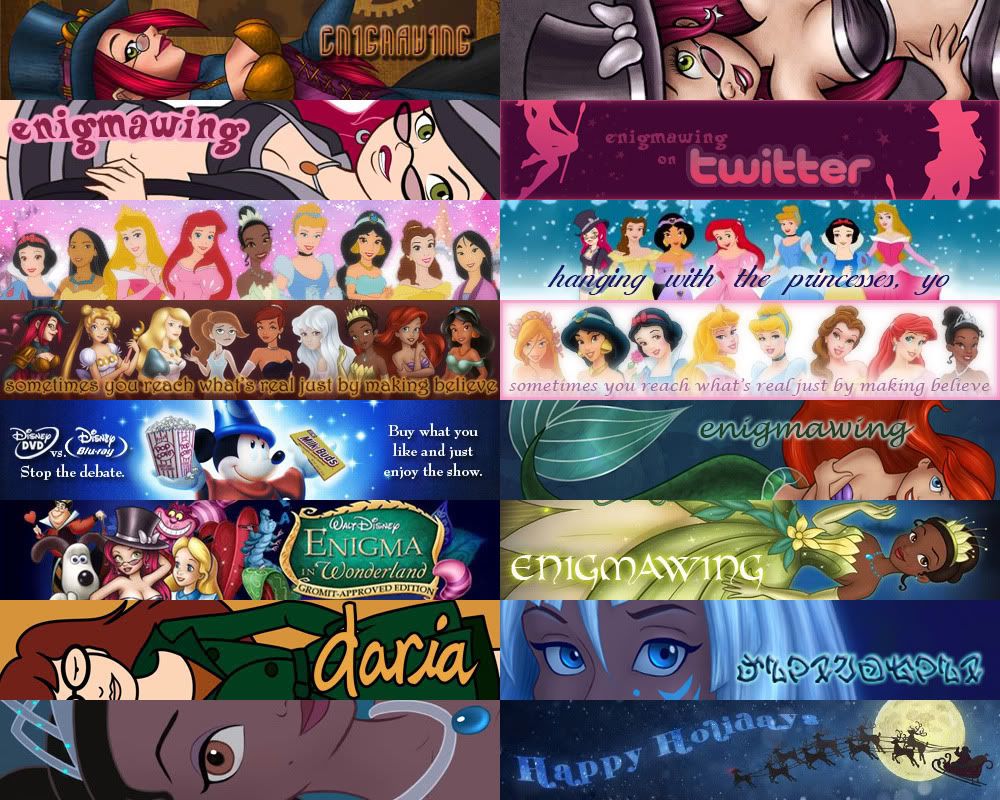 Not gonna change my banner yet, but for the heck of it I thought I'd pop in with a record of some of the many banners I've used here (in no particular order).