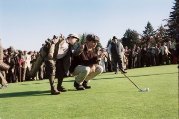 ![]() Francis Ouimet (Shia LaBeouf) gets some greens advice from his diminutive caddy Eddie Lowery (Josh Flitter). |