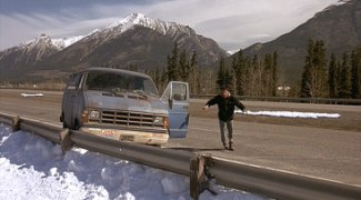 But here comes the curveball - Jake is left in the middle of the desert with a Santa Claus suit on the day he is supposed to come home by some of his goonier college friends, who were dissatisfied with the services Jake rendered to help them with their final exam (in the universe that this movie takes place, the professor doesn't suspect anything when four jocks are all getting beeped during the final, which doesn't surprise one so much considering the university's final exam has fill-in-the-blank answers like "Frederic Douglass"). An improbable cross-country trip to get home for Christmas ensues, and Jake encounters a variety of colorful characters along the way.