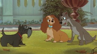 Theatrical Release: June 16, 1955 / Running Time: 76 Minutes / Rating: G Directors: Clyde Geronimi, Wilfred JacksonVoice Cast : Peggy Lee (Darling/Si/Am/Peg), Barbara Luddy (Lady), Larry Roberts (Tramp), Bill Thompson (Jock/Bull/Dachsie/Joe), Bill Baucon (Trusty), Stan Freberg (Beaver)Songs: "Bella Notte", "He's a Tramp", "The Siamese Cat Song", "What is a Baby?", "Peace on Earth", "La La Lu" |