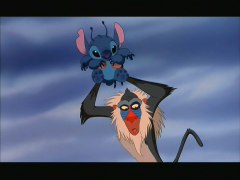 By far the best feature on the entire DVD is "On Location With the Directors" which is a 20-minute behind the scenes featurette. Next up are three deleted scenes, two of which are extended versions of existing ones. "Stitch's Trial" is an alternate version of the one found in the film. Here we do not see Jumba and are led to believe Stitch was captured for destroying the city as opposed to simply being a dangerous creation. Finally, we find 4 teaser trailers for the film. In each one, Stitch terrorizes a particular Disney film in an attempt to be in a Disney movie. The ones shown are The Little Mermaid, Beauty and the Beast, Aladdin, and the Lion King. Aladdin proved to be the most hysterical, but all four are clever and fun with Disney poking fun at themselves. Oddly, the official theatrical trailer fails to show up here.