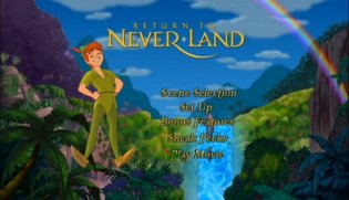 Movie - Return to Never Land not only screams "direct-to-video" sequel, it feels like one of the more mediocre video efforts. Even compared to the relatively mediocre sequel efforts like Simba's Pride and Little Mermaid II: Return to the Sea, Return to Never Land pales. That is nothing to say of the original Peter Pan, a dazzling feature which remains rather fresh nearly fifty years after being released. The reason that Return to Never Land seems so much like a direct-to-video feature is because that's exactly what it is. Originally intended to come straight to video and DVD, Disney decided instead to release it in theaters, during the mid-February slot that has become the studio's yearly attempt to cash in on a second-rate animation feature, made by the television department. So in addition to the surefire video sales Never Land will make, add the theatrical gross of around $60 million, and you'll see the logic for Disney to put a film of this caliber in cinemas last winter. Video - Not surprisingly, Return to Never Land's video transfer looks terrific. The animation looks far more sterile and far less visually interesting than its predecessor. Although the animators try to maintain the look of the original, particularly using shadows as a callback to the stylistic design of the original. But it seems in vein, as nothing in this sequel can capture the feel of the original film, whether in look, tone, or quality. There is nothing to complain about regarding the transfer, though. The animation seems enhanced by computers in the coloring and design processes, which contributes to the somewhat boring artificial look of this piece. But the film, presented in its original 1.66:1 widescreen aspect ratio, which Disney has labelled "family-friendly widescreen" benefits on the DVD format from its computer techniques. Also, clocking in at a very lightweight 72 minutes, the film comfortably fits on a layer all to itself, with the handful of extras taking their place on the second layer. Audio - The Dolby Digital 5.1 track is just fine, and presents a moderately active audio experience for the viewer. Since the film was completed less than a year ago, it's not much of a surprise that the sound quality is without complaints. The recorded dialogue all sounds natural, and there is some surround usage for the film's music (which generally feels quite contemporary...and features BBMak doing "Do You Believe In Magic?" for the film's closing credits...groan). Extras - In terms of extra content, Return to Never Land is pretty skimpy, even for a second-rate animated feature. There are two unfinished deleted scenes (if you can even call them "scenes") in 16:9 widescreen, which run even shorter than the brief discussion on them from the Producer Chris Chase and Executive in Charge of Production Sharon Morrow. There is a Music Video for the song "I'll Try" performed by Jonatha Brooke (3 minutes, 55 seconds). For children, there is the "Never Land's New Hero" StoryTime, which is the usual "Have It Read to You" or "Read It To Yourself" activity. The "Rescue the Lost Boys Adventure Game" is well-designed, but pretty straightforward and none-too-exciting. Lastly, there is a DVD-ROM extra, a sampler of the activity game "You Can Fly with Tinker Bell." The enhanced menus are mostly static with the film's score playing, with animated transitions. This disc also includes the THX Optimode audio and video tests, designed to calibrate your television/monitor for the best quality presentation. Oh, and yes, there are 8 Sneak Peeks (some of which play before the menu load, but as usual, can be skipped) , including a look at Disney's next animated feature Treasure Planet. Closing