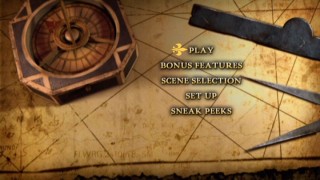 MENUS and PACKAGING Like its predecessors, Dead Man's Chest comes to DVD with simple menus, though at least these ones have a bit more color to them. The snazzy slipcover packaging reflects its holder in no less than three places. Supposedly this "3-D Packaging" is limited and judging from the scarcity of slipcovers found on The Little Mermaid (just two months after release), that's probably true, so do not hesitate if it's a big deal to you. Inside the standard-width keepcase, one finds two inserts: an 8-page, fold-open guide which lists scene selections and both describes and outlines bonus features on the two discs. The smaller booklet gives you ads, coupons, and a Disney Movie Rewards code. Disc 1 opens with a still promo for the movie's official website plus sneak peeks for Peter Pan: Platinum Edition (a Pirates of the Caribbean-themed promo), The Chronicles of Narnia: The Lion, The Witch and The Wardrobe Extended Edition and Gift Set, Meet the Robinsons, and Ratatouille, plus a pirate-flavored promo for the Disney Movie Rewards program and a spot for Disney on Blu-ray. The menu holds additional previews for Invincible, The Guardian, and Disney Parks.