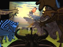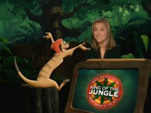 “Timon & Pumbaa’s Virtual Safari 1.5” is the promised follow-up to the virtual safari on The Lion King’s DVD. Although it’s called a safari, its actually presented as a ride that Timon built in the middle of the savanna. It explicitly spoofs several of the rides from Disneyland, including Pirates of the Caribbean, The Haunted Mansion, “It’s a Small World”, Mr. Toad’s Wild Ride, and the Matterhorn. I found this to be much more fun than the first virtual safari. I recommend it, even for those who normally don’t like this type of stuff. “Who Wants to Be King of the Jungle?” is obviously a take on the popular game show, hosted by its actual host, Meredith Vieira. It’s format is nearly identical to the show, with 3 life-lines and ten levels, asking questions dealing with all 3 Lion King films. As long as the player is familiar with all 3 films, he or she should have no problem completing this. I haven’t seen The Lion King II in years, so failed to win even after three tries, but I still found it to be one of the most engaging DVD games I’ve ever played. “Find the Face” requires the player to identify silhouettes of various Disney characters. I think kids and adults alike will find it extremely easy, yet it’s an amusing feature that ends our tour of the second disc.