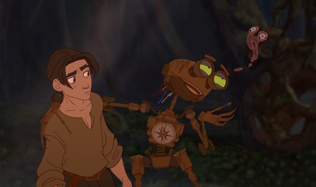 The film plays out in the intergalactic equivalent of Stevenson's novel, with Silver and his salty fellow pirates aiming to find and claim the treasure for themselves, across from Jim, Doppler, and Amelia. For example, the island castaway Ben Gunn becomes B.E.N. (Bio Electronic Navigator, amusingly voiced by Martin Short), a robot missing his memory chip. That is one of the more creative touches to a film that is enjoyable but easily forgotten.