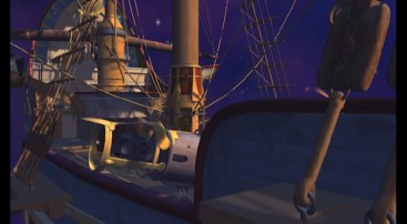 "R.L.S. Legacy: Virtual 3D Tour" takes us around a CG model of the vessel, allowing us to sweat the details. Artistic coordinator Neil Eskuri narrates the Technical Tour (9:29) that's focused on the visuals and production designer Steven Olds handles the Nautical Tour (7:40) about the parts of the boat. Since the setting isn't all that compelling, these tours are fairly dull.